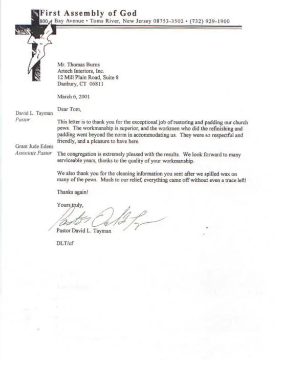 Pastor David L. Tayman, March 6, 2001